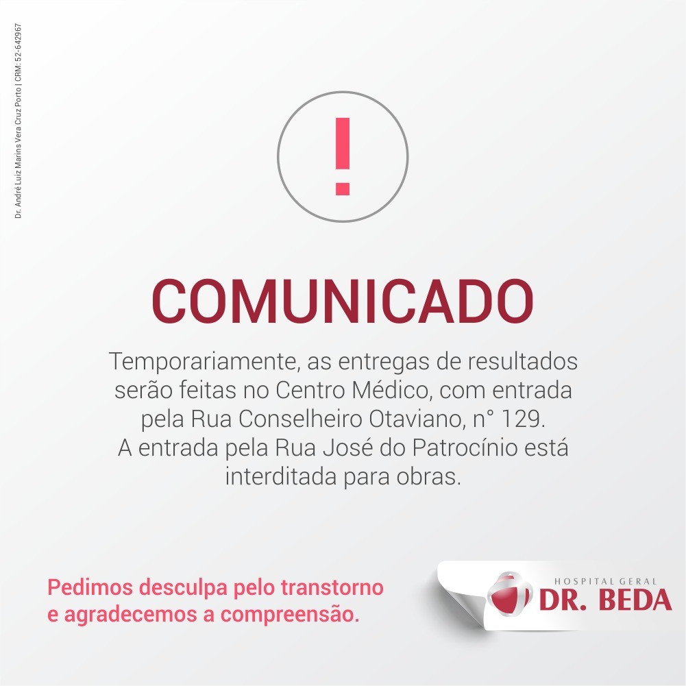 O Hospital Dr. Beda, diante da pandemia do Novo Coronavírus – COVID-19, organizou um Plano de Contingência para melhor assistir a população neste momento de crise. Para isso, foi alterado o fluxo de atendimento do serviço de Emergência, visando a contenção e a segurança de todos os pacientes.